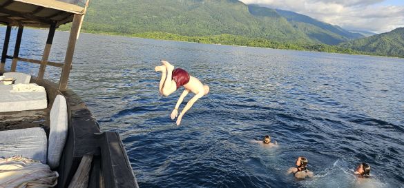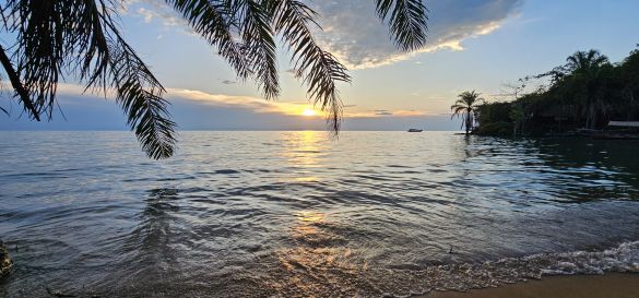 The sunset is reflected in the crystal clear water before setting as a fiery red ball on the horizon of the DR Congo on the opposite shore of Lake Tanganyika. After a delicious dinner, we fall into our comfortable beds happy and content.